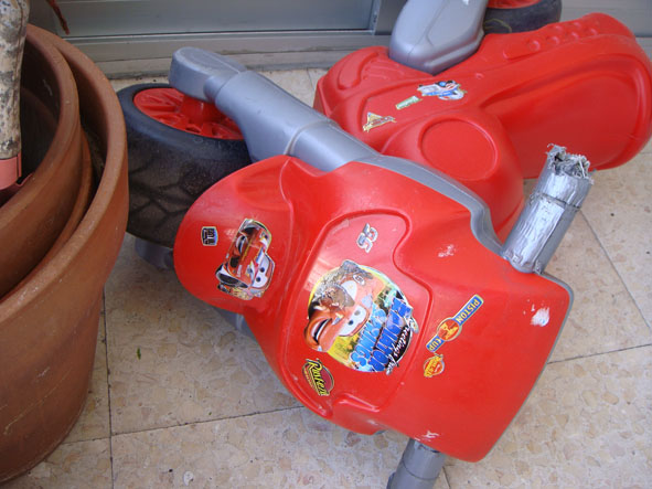 | moto hecha polvo con pegatinas nuevas q se vuelan con el viento |
